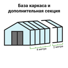 Длина базовой теплицы - 3,2 м. в комплекте: дверь-купе и двойная форточка в крыше.